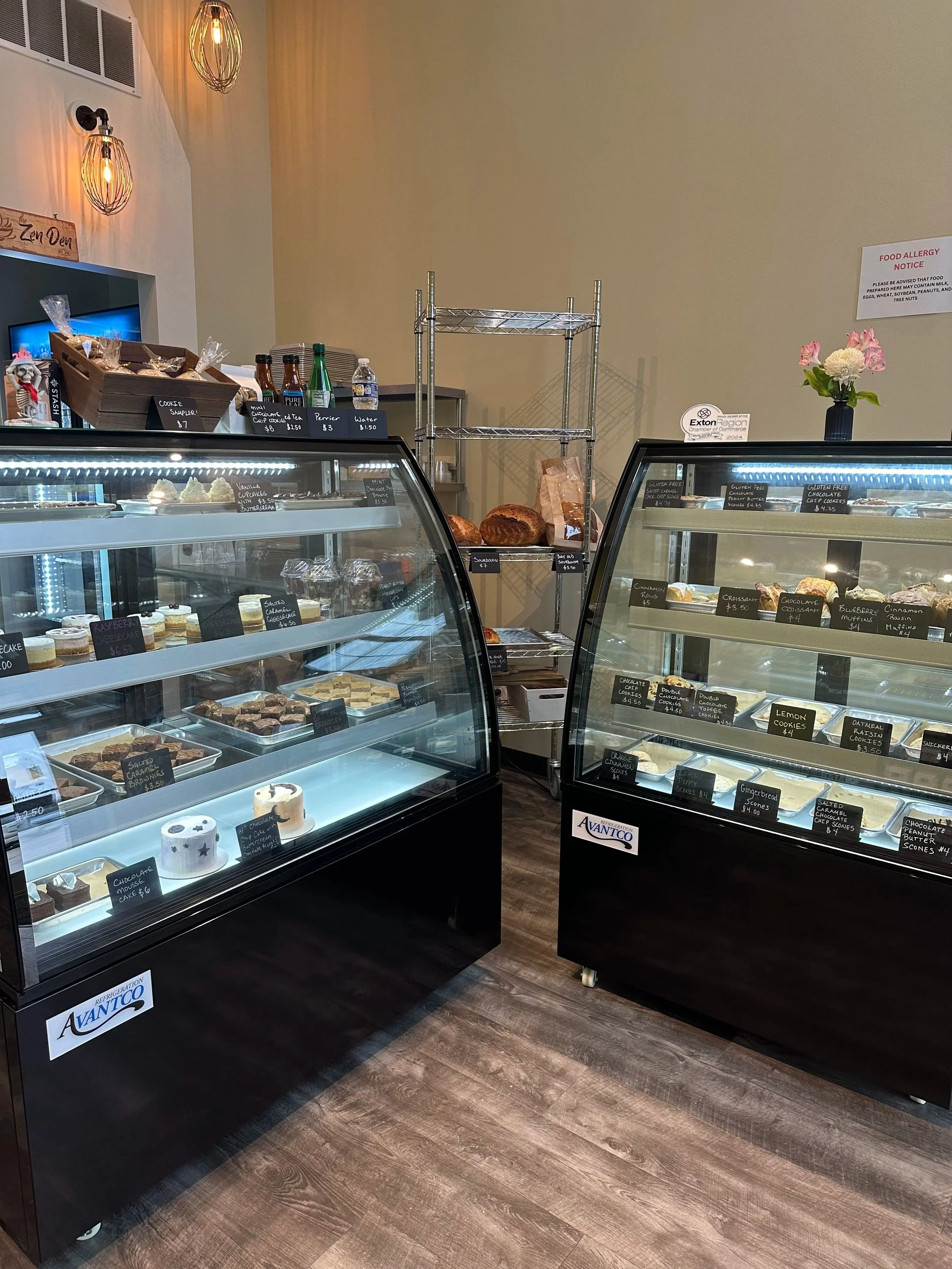 You will always find a variety of fresh baked breads including sourdough and focaccia, our award winning cinnamon rolls, cookies, scones, coffee cake, muffins, biscotti, individual cheesecakes, brownies, a variety of fruit crumbles, an expanding selection of gluten free options, coffee, tea, and more!